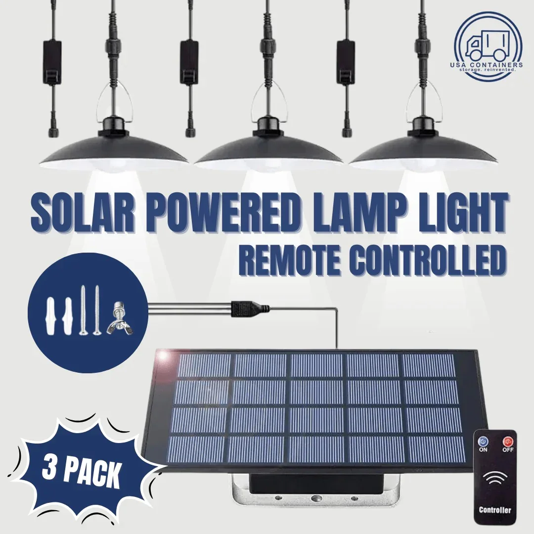 This three-lamp interior lighting system is designed to distribute light evenly across a larger area. The lamps connect to a solar panel that charges during the day, eliminating the need for wiring or electrical outlets. A remote control allows you to turn the lights on and off easily without reaching for switches.