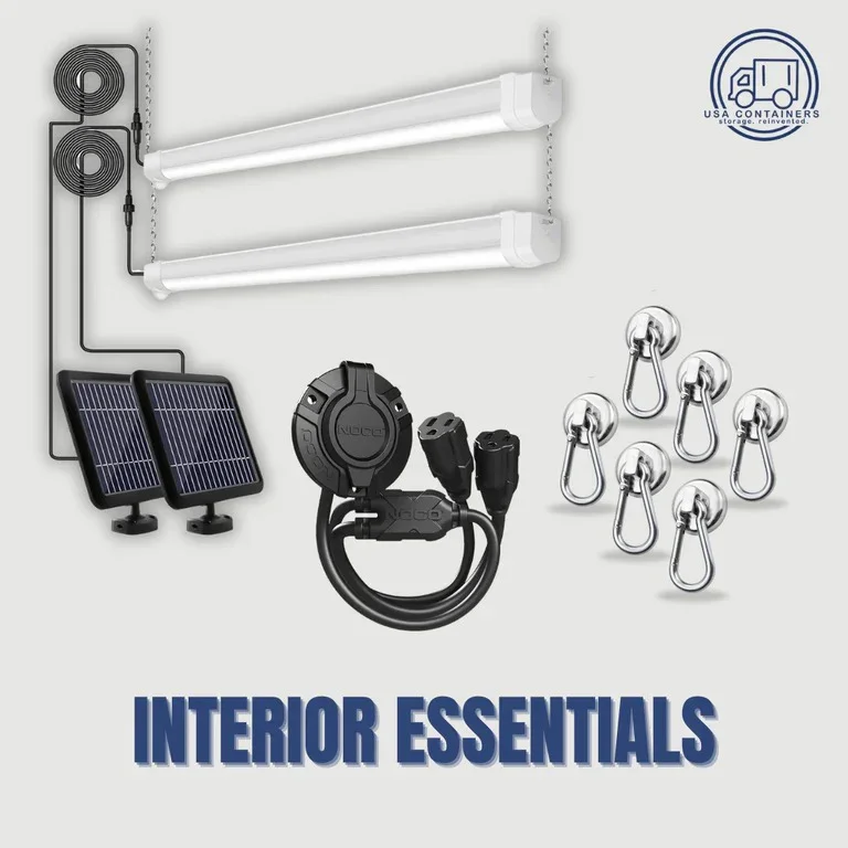 This bundle combines lighting with additional interior accessories to help users set up a container quickly and efficiently. Along with lighting components, the kit includes organization and power accessories designed for container interiors.