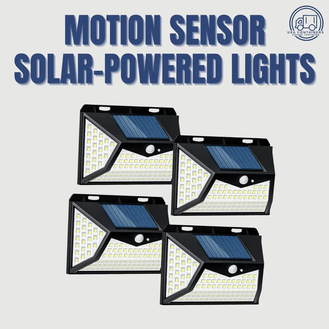 These exterior motion-detecting solar lights improve visibility and security around a shipping container. Each light activates when motion is detected, making them useful near doors, ramps, and walkways. Because they are solar powered, installation does not require running power lines.